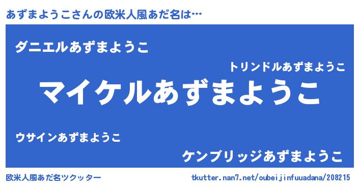 | 男性向けラノベタイトル風あだ名 | 『アズマヨウコアートオンライン』 |
