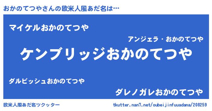 | 意味不明あだ名 | 『自称おかのてつや』 |