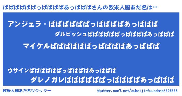 | 男性向けラノベタイトル風あだ名 | 『ぱぱぱぱぱぱっぱぱぱぱあっぱぱぱの憂鬱』 |