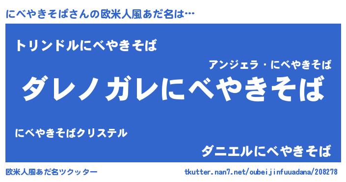| ヒーロー風カッコイイあだ名 | 『仮面ニベダー』『スーパーニベヤキソバ』 |