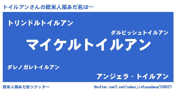 | 女子向けラノベタイトル風あだ名 | 『トイルアン姫と円卓の騎士』 |