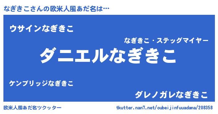 | 男性向けラノベタイトル風あだ名 | 『おまえをオタクにしてやるから、俺をなぎきこにしてくれ! 』 |