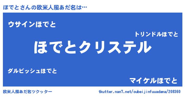 | 意味不明あだ名 | 『ほでとフォーエバー』『ペロリンほでと』 |