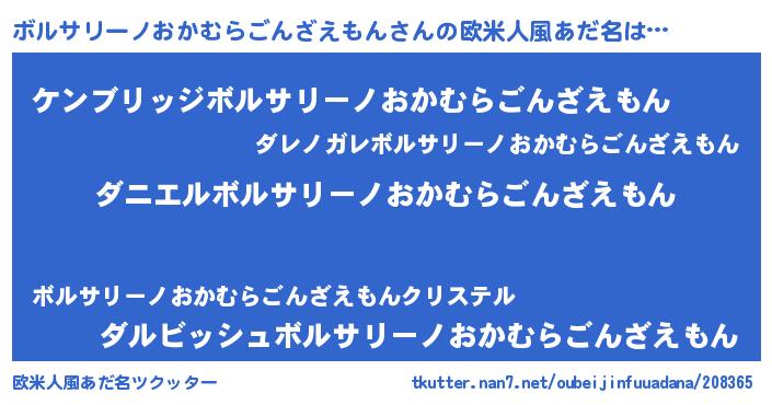 | 男性向けラノベタイトル風あだ名 | 『ノーゲーム・ノーボルサリーノオカムラゴンザエモン』 |