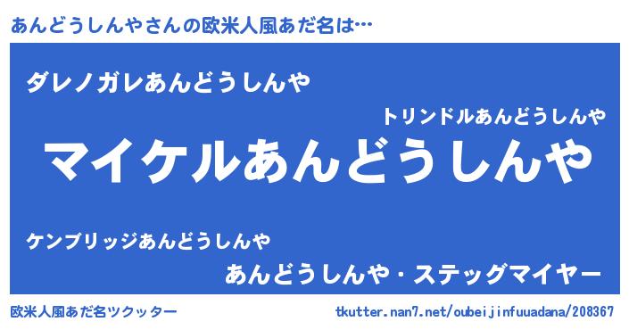 | 胡散臭い通販商品みたいなあだ名 | 『億万長者になれる霊験あらたかなお札…その名も「あんどうしんや」』 |