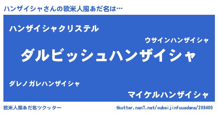 | ポケモン風あだ名 | 『ゼニハン』『ハンザダネ』 |
