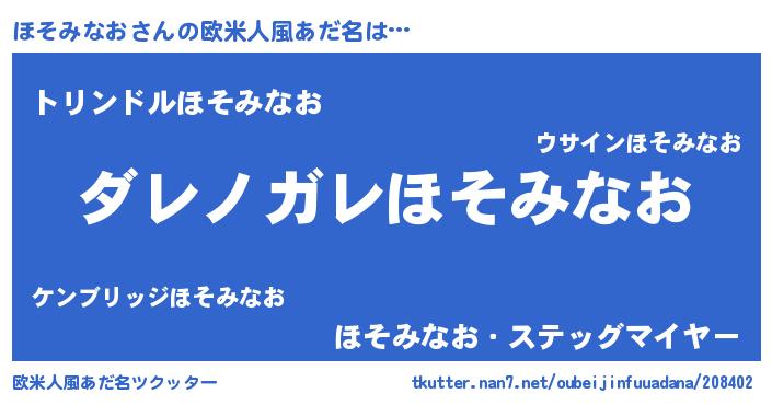 | 意味不明あだ名 | 『住所不定無職ほそみなお(81歳)』 |