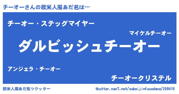 | 男性向けラノベタイトル風あだ名 | 『誰もが恐れるあのチーオーが、ぼくの専属メイドになるようです。』 |