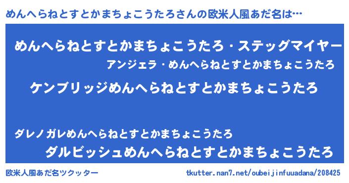 | ヘコむあだ名 | 『めんへらねとすとかまちょこうたろ(笑)』 |
