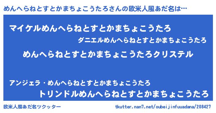 | 男性向けラノベタイトル風あだ名 | 『やはりめんへらねとすとかまちょこうたろの青春ラブコメはまちがっている 』 |