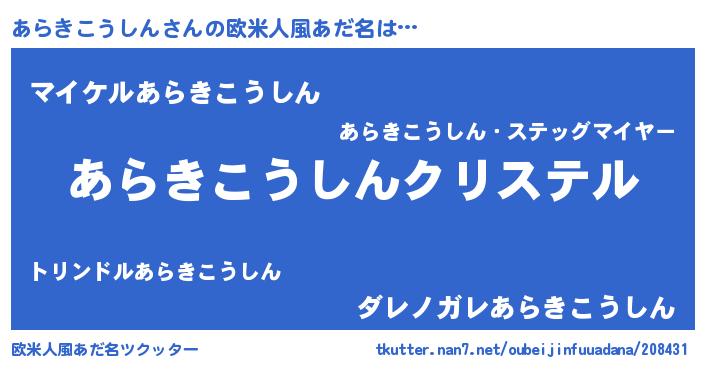 | 男性向けラノベタイトル風あだ名 | 『やはりあらきこうしんの青春ラブコメはまちがっている 』 |