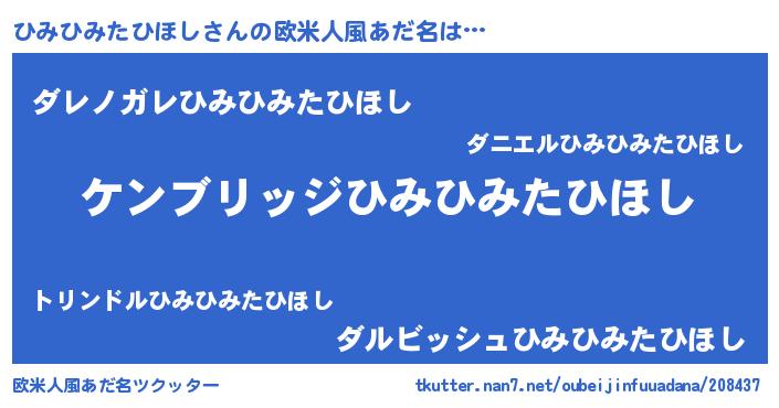 | 女子向けラノベタイトル風あだ名 | 『ひみひみたひほしなんてお断りですっ。』 |
