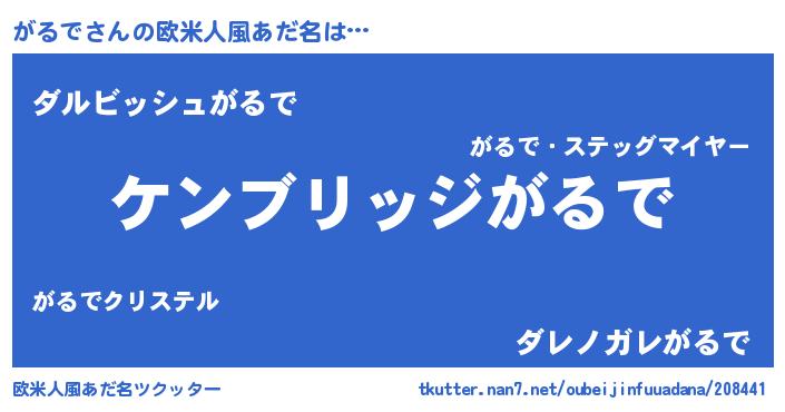 | 男性向けラノベタイトル風あだ名 | 『Re:がるでから始める異世界生活』 |