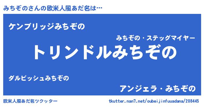 | 男性向けラノベタイトル風あだ名 | 『みちぞの~年齢イコール彼女いない歴の魔法使い~』 |