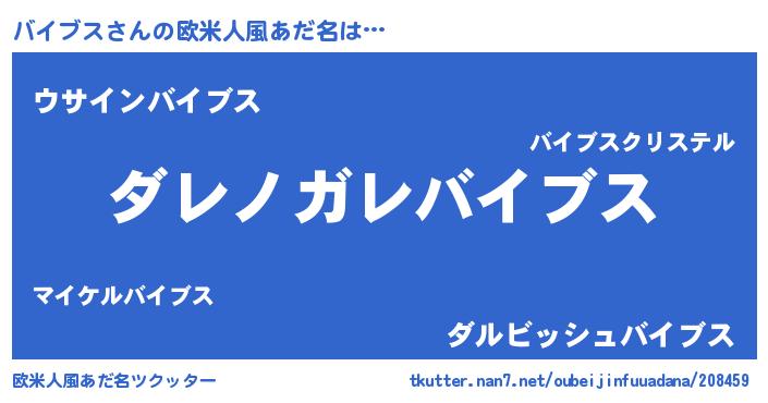 | 男性向けラノベタイトル風あだ名 | 『魔弾の王とバイブス』『バイブスの憂鬱』 |