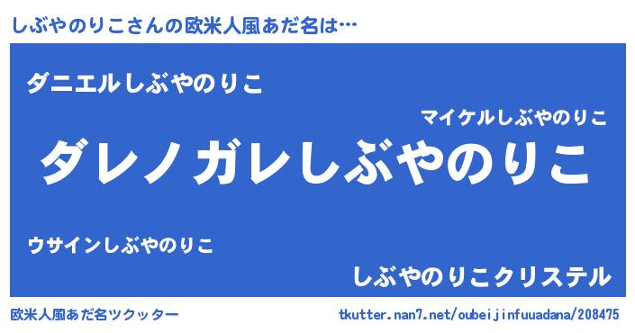 | 男性向けラノベタイトル風あだ名 | 『この素晴らしい世界にしぶやのりこを!』 |