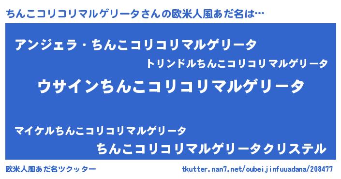 | ポケモン風あだ名 | 『ヒチンココリコリマルゲリータ』 |