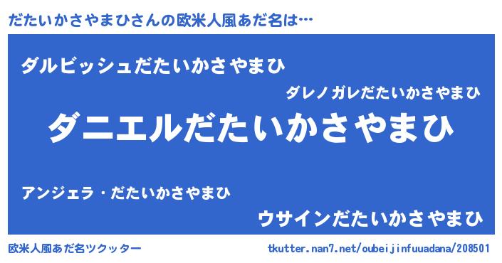 | 男性向けラノベタイトル風あだ名 | 『おまえをオタクにしてやるから、俺をだたいかさやまひにしてくれ! 』 |