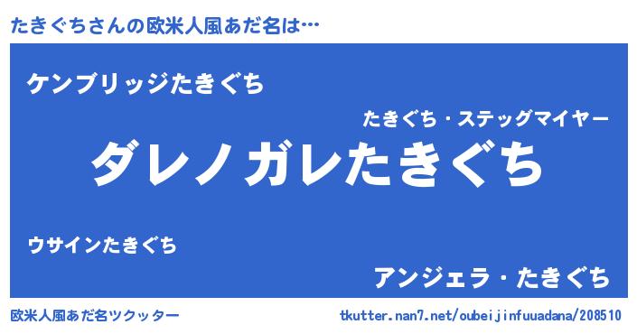 | ピコ太郎風あだ名 | 『タキ二郎』『タタ太郎』『タコ史郎』 |
