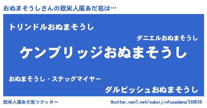 | 男性向けラノベタイトル風あだ名 | 『Re:おぬまそうしから始める異世界生活』 |