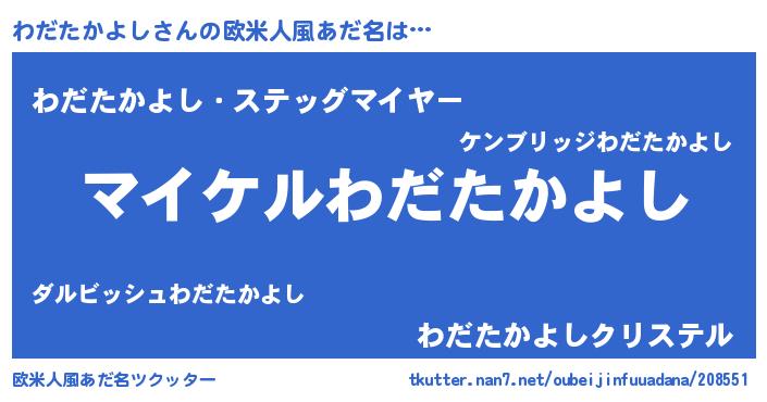 | 男性向けラノベタイトル風あだ名 | 『わだたかよしの憂鬱』 |