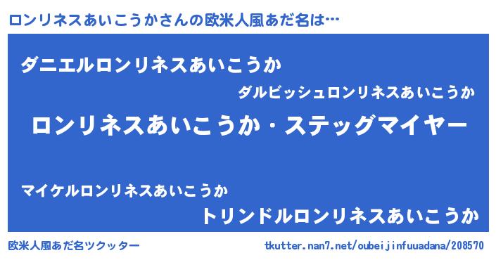 | 男性向けラノベタイトル風あだ名 | 『うちのロンリネスあいこうかが世界を掌握している!』 |