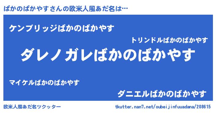 | 男性向けラノベタイトル風あだ名 | 『この素晴らしい世界にばかのばかやすを!』 |