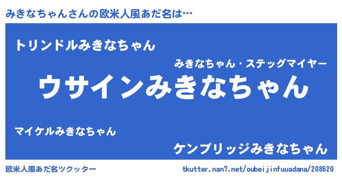 | 男性向けラノベタイトル風あだ名 | 『みきなちゃんの嫁は女の子じゃないと思った?』 |