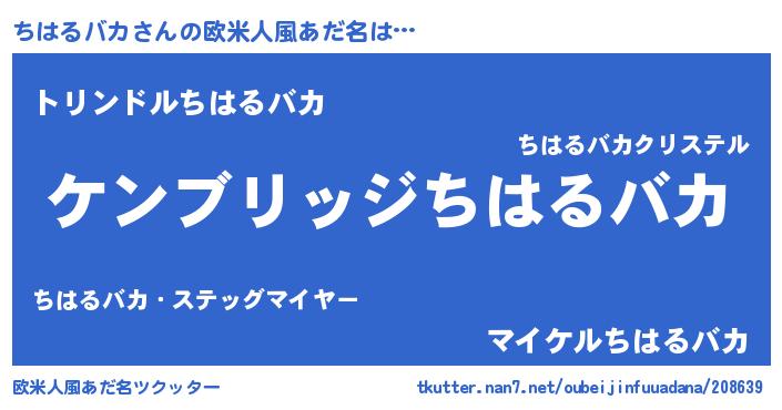 | 男性向けラノベタイトル風あだ名 | 『Re:ちはるバカから始める異世界生活』 |