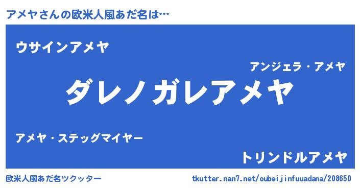 | ヘコむあだ名 | 『アメっちょ』『アメヤ(爆)』 |