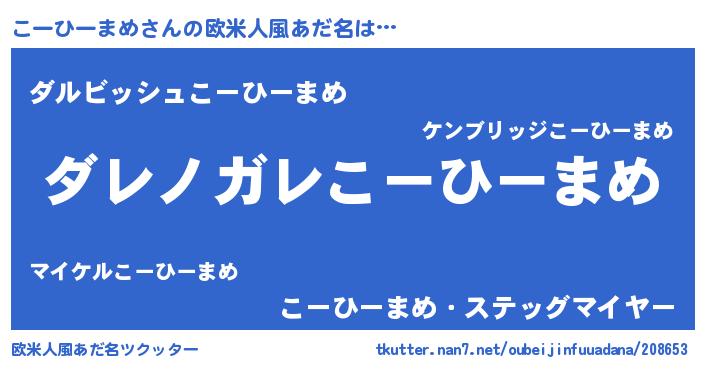 | ヘコむあだ名 | 『こーひーまめ(遠い目)』『こーもー』 |
