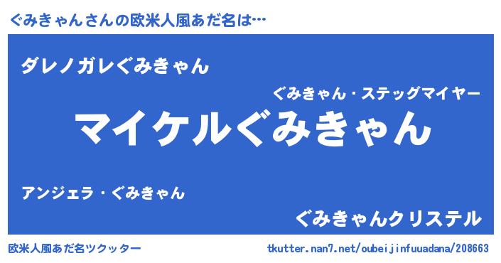 | 女子向けラノベタイトル風あだ名 | 『ぐみきゃん姫と円卓の騎士』 |
