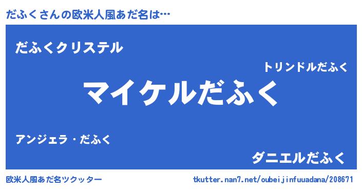 | 男性向けラノベタイトル風あだ名 | 『だふくの憂鬱』『はたらくだふくさま!』 |