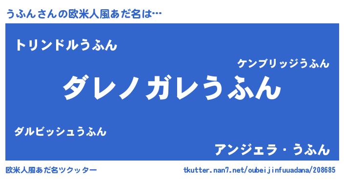 | 意味不明あだ名 | 『住所不定無職うふん(8歳)』『自称うふん』 |