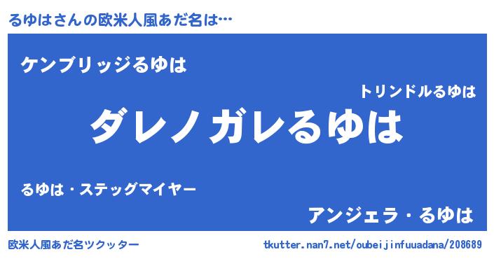 | 男性向けラノベタイトル風あだ名 | 『この素晴らしい世界にるゆはを!』 |
