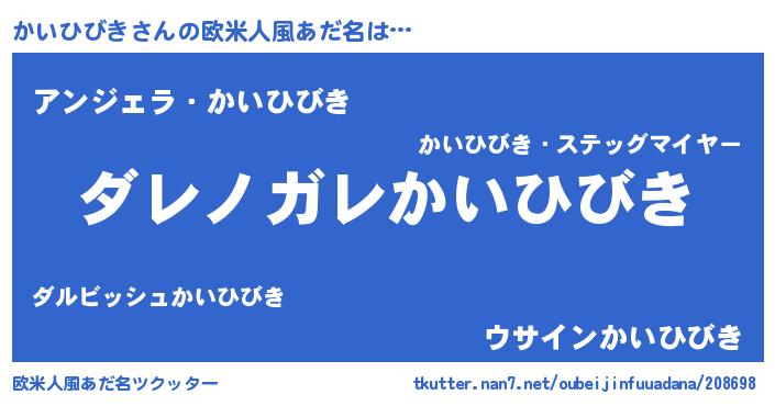 | 男性向けラノベタイトル風あだ名 | 『魔弾の王とかいひびき』 |