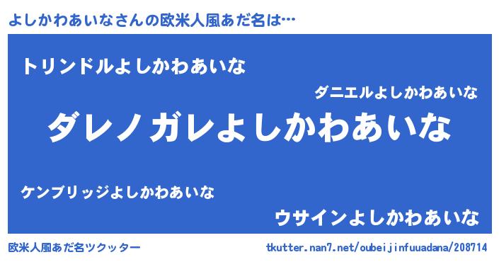 | ヘコむあだ名 | 『よしを』『よしかわあいな(遠い目)』 |