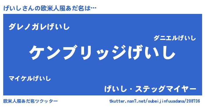 | 意味不明あだ名 | 『自称げいし』『住所不定無職げいし(53歳)』 |