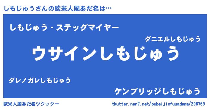 | 男性向けラノベタイトル風あだ名 | 『しもじゅうの嫁は女の子じゃないと思った?』 |