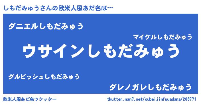 | 女子向けラノベタイトル風あだ名 | 『しもだみゅうは平凡を望む』 |
