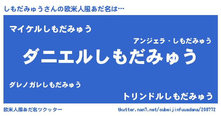| 男性向けラノベタイトル風あだ名 | 『おまえをオタクにしてやるから、俺をしもだみゅうにしてくれ! 』 |