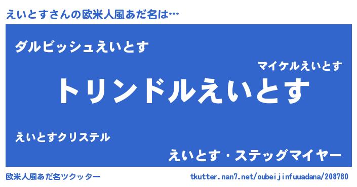 | ヘコむあだ名 | 『えいとす(笑)』『えいにー』 |