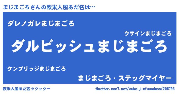| 男性向けラノベタイトル風あだ名 | 『まじまごろという概念が存在しない退屈な世界 』 |