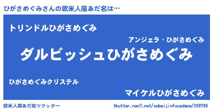 | 意味不明あだ名 | 『永久保存ひがさめぐみ』 |
