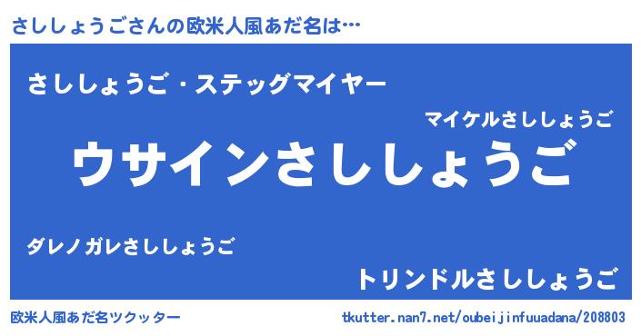 | 男性向けラノベタイトル風あだ名 | 『さししょうごの嫁は女の子じゃないと思った?』 |