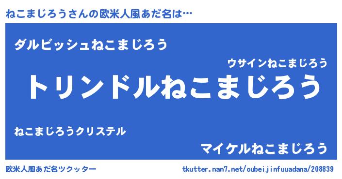 | 女子向けラノベタイトル風あだ名 | 『ねこまじろうの玉の輿計画!』 |