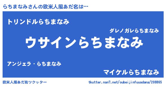 | 男性向けラノベタイトル風あだ名 | 『らちまなみの嫁は女の子じゃないと思った?』 |