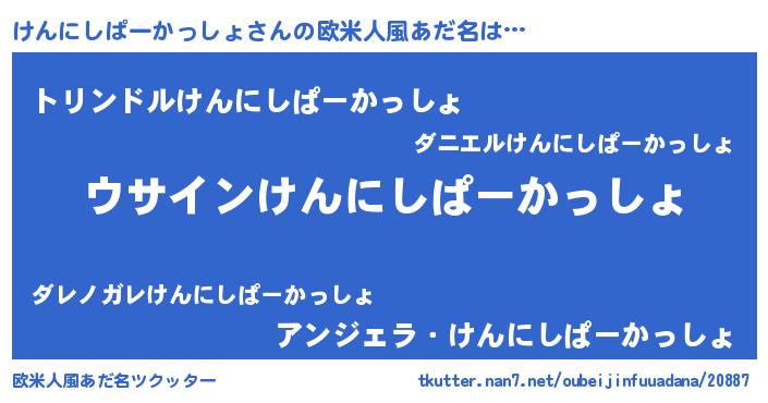 | 男性向けラノベタイトル風あだ名 | 『ダンジョンにけんにしぱーかっしょを求めるのは間違っているだろうか』 |