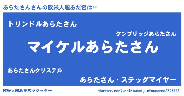 | 男性向けラノベタイトル風あだ名 | 『アラタサンアートオンライン』 |