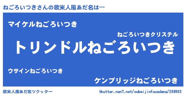 | 男性向けラノベタイトル風あだ名 | 『転生したらねごろいつきだった件』 |
